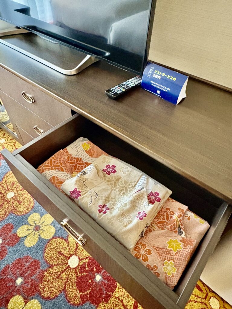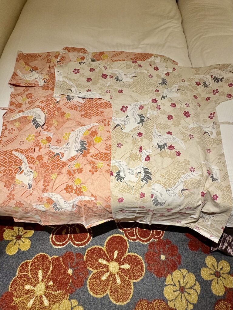 大人用は浴衣タイプの室内着とバスローブが用意されていましたが、