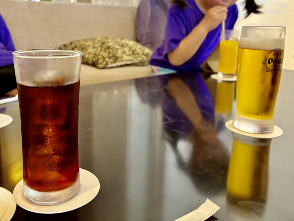 夫はオリオンビールをいただいていて、