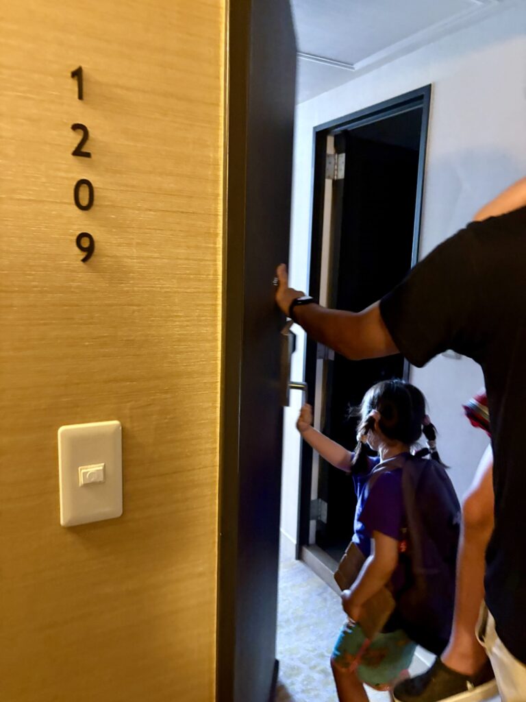 フロントスタッフの方がルームキーを持ってきてくださり、