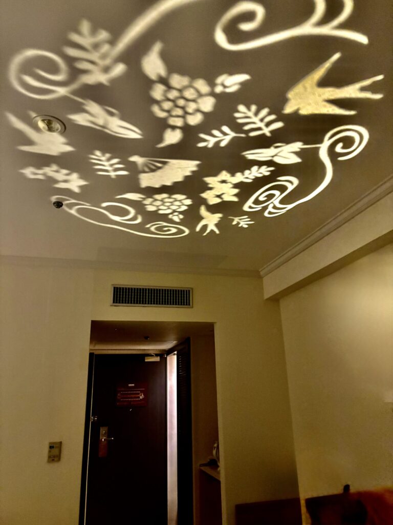 天井にはグラフィックスポットライトによる模様が映し出されていて、