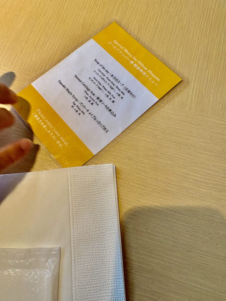 今回の宿泊では、ヒルトン・オナーズのゴールド会員特典をいくつか利用することができました。