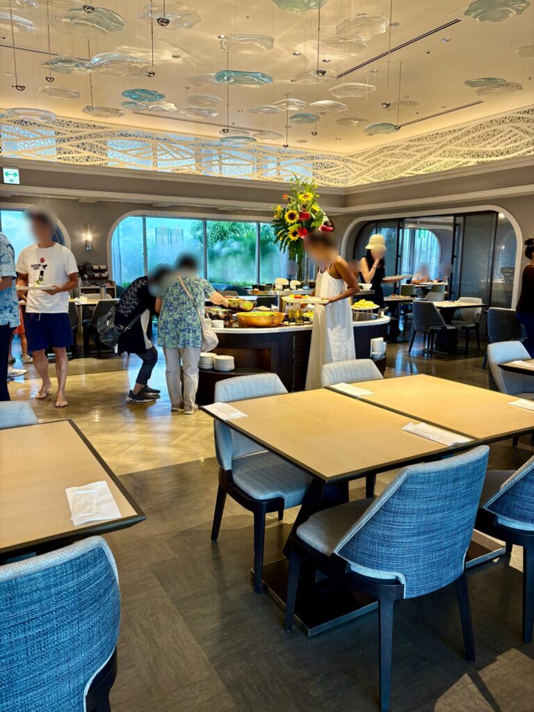 賑やかで活気のある、ファミリー向けの朝食会場という印象。