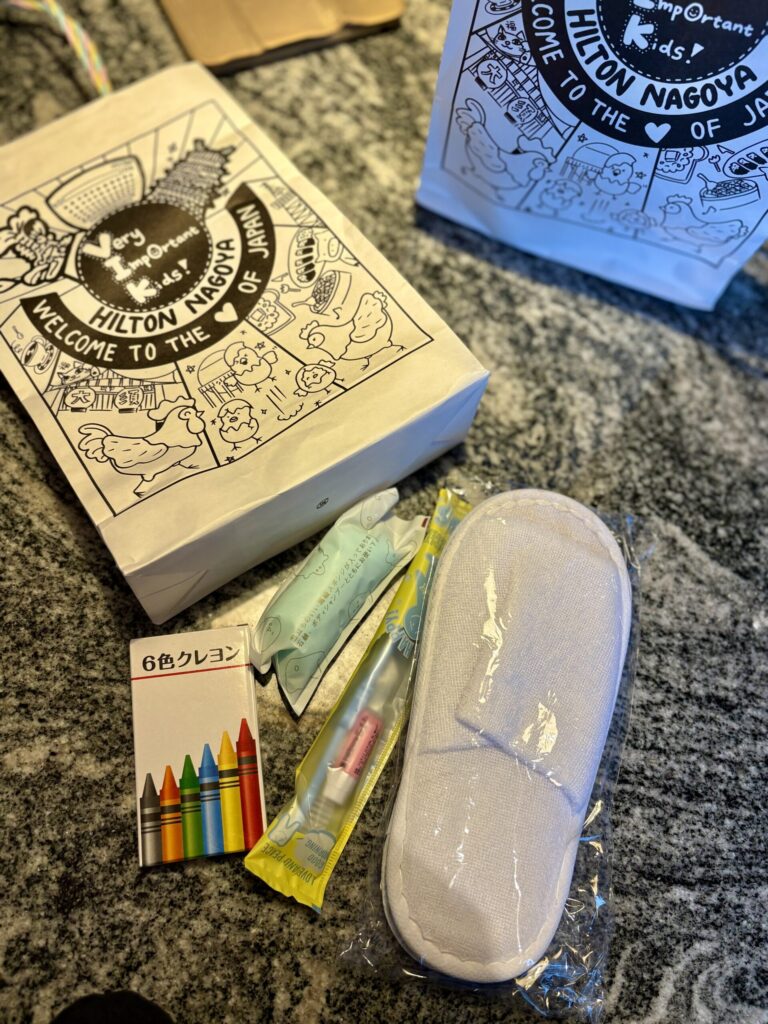 チェックイン時にいただいた子ども用アメニティは、紙袋に入ったセットでした。