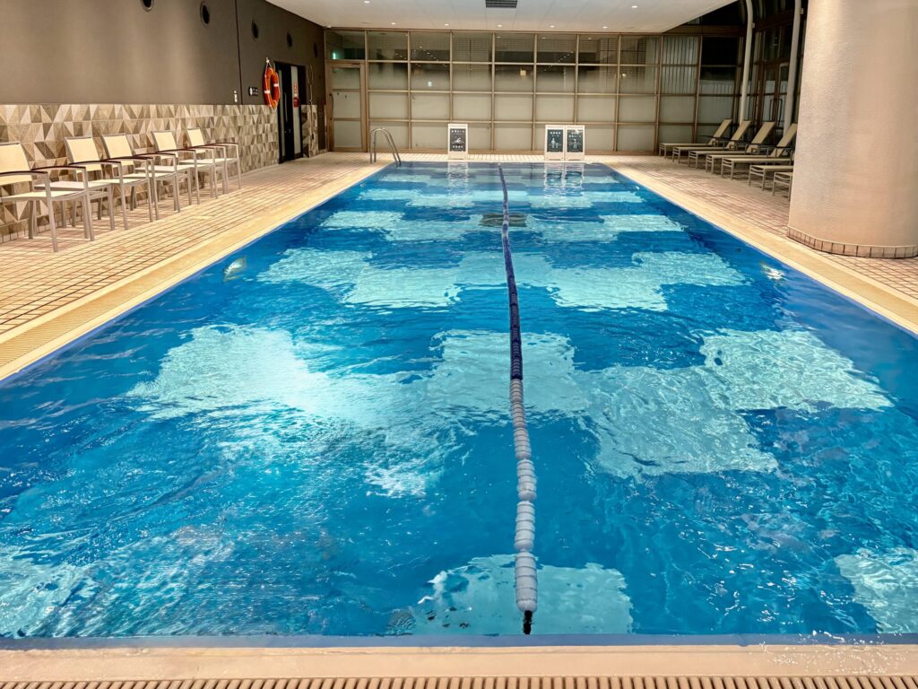 プールをはじめ、お風呂(水風呂あり)、サウナ、ジム、テニスコートが揃っています。