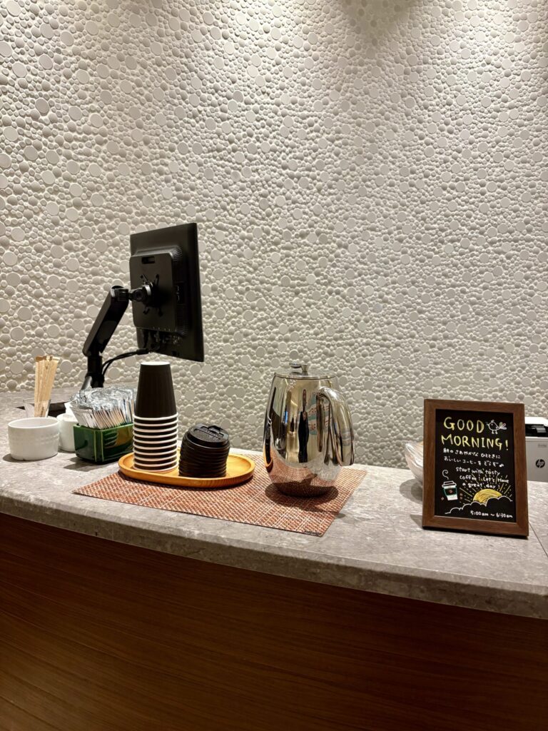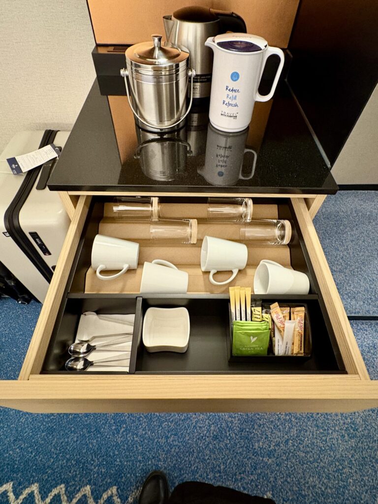 今回の客室は廊下のサーバーからやや距離があり、この点は少し不便に感じました。