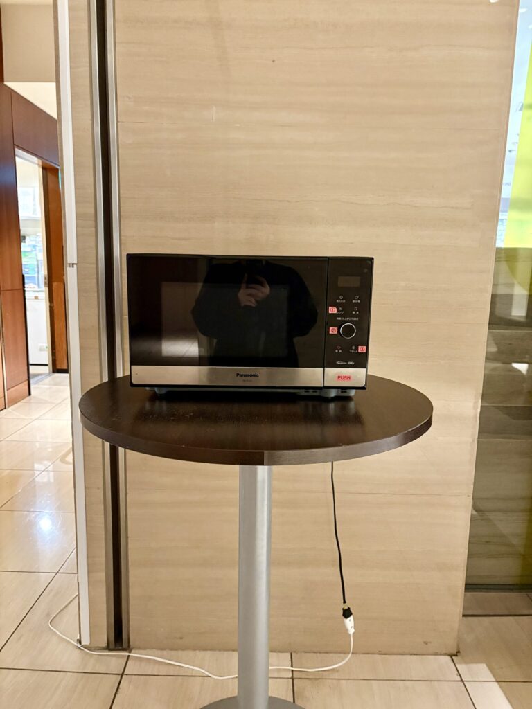 近くには電子レンジも設置されているため、持ち帰った食事を温めて客室でゆっくり食べることも可能です。