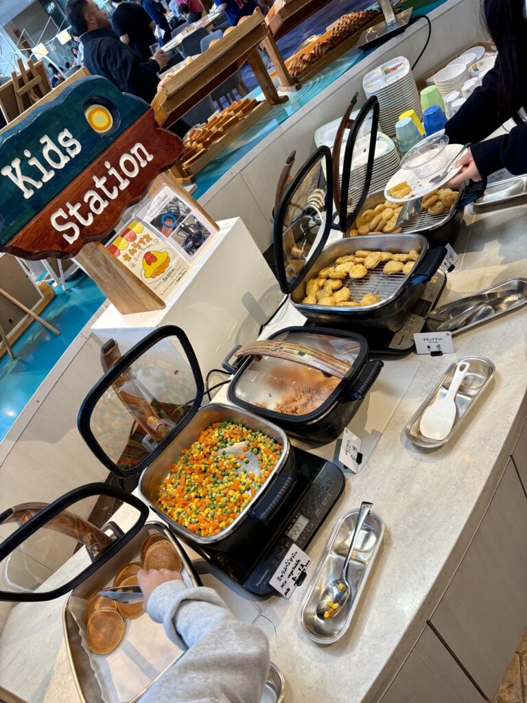 キッズステーションではオムライスやスマイルポテト、ナゲット、パンケーキなど、