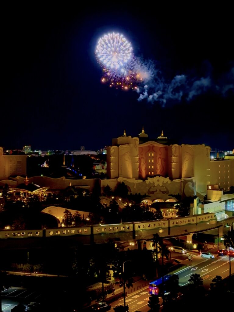 夜にはディズニーの花火もきれいに見ることができました。