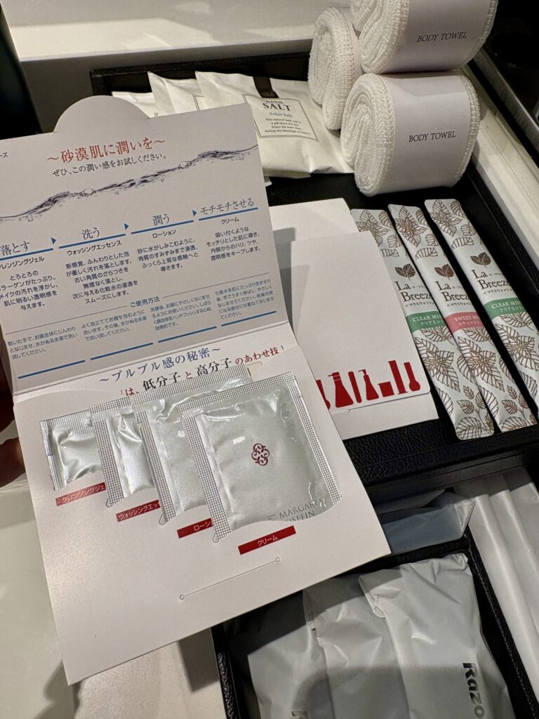 シャンプーやコンディショナー、ボディケア類はおなじみのイヴリンが用意されており、