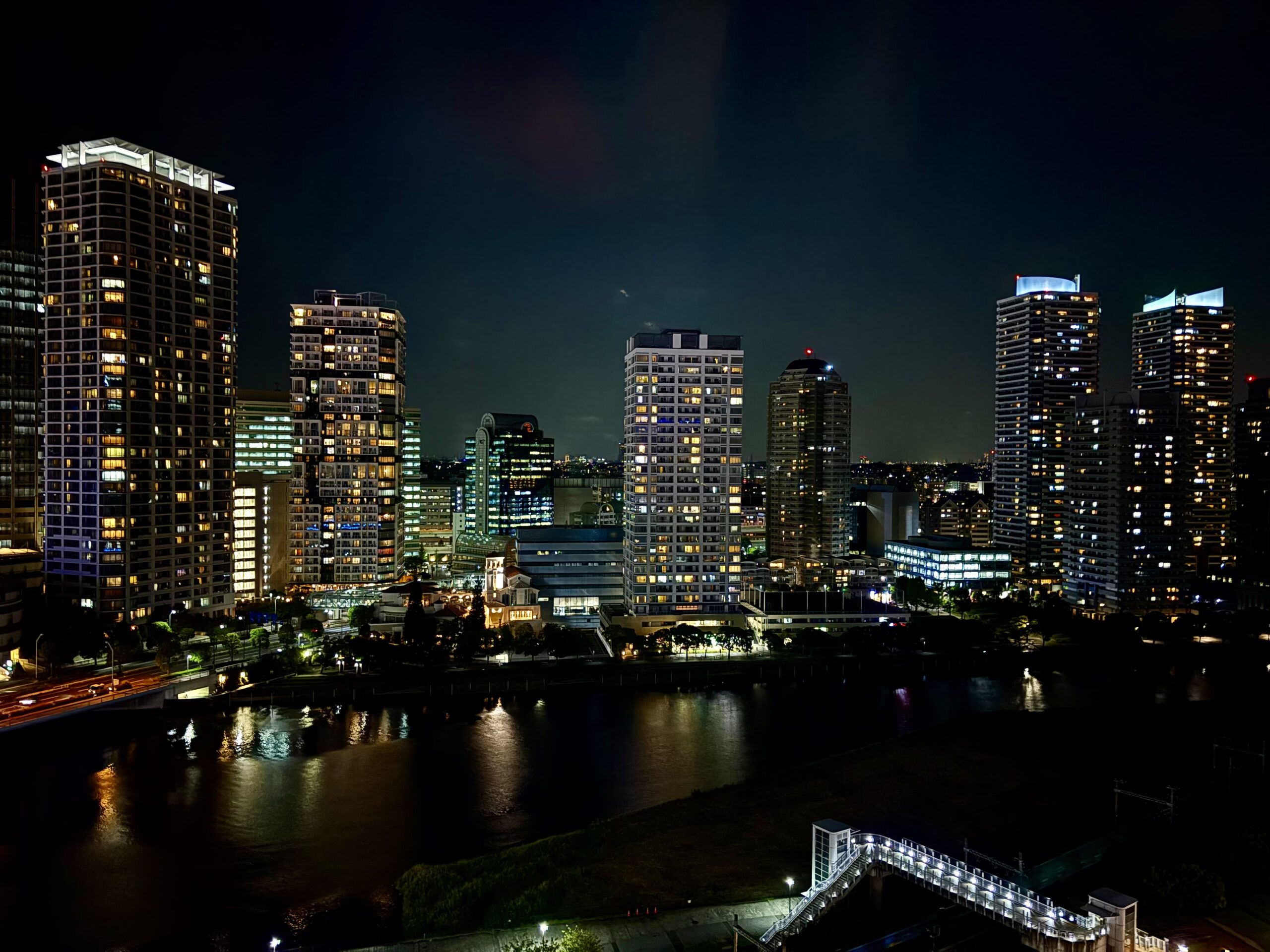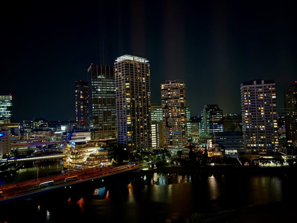 みなとみらいの街の光が水面に映る様子はとても美しく、