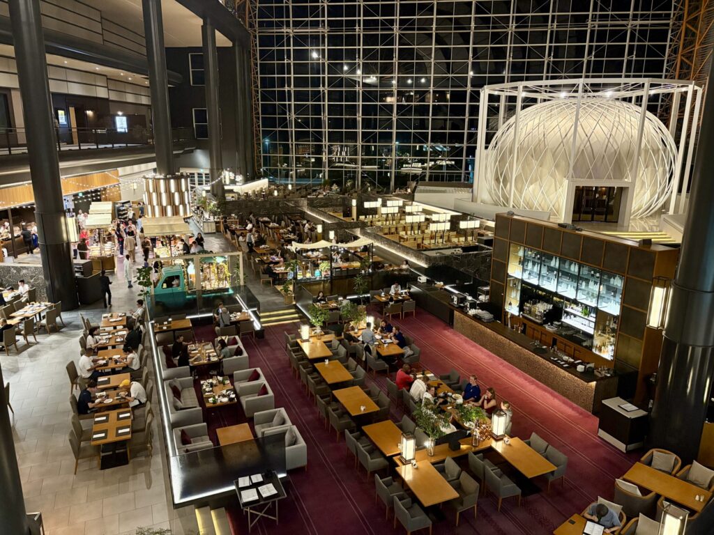 夜は巨大なアトリウムに包まれた落ち着いた雰囲気。