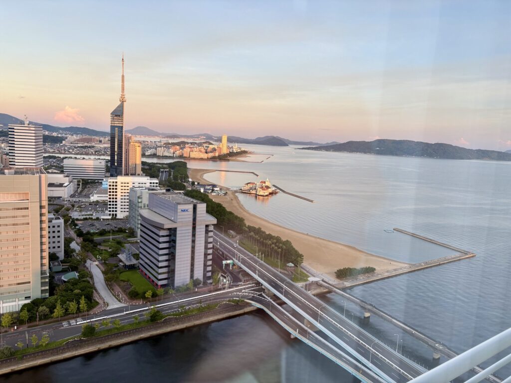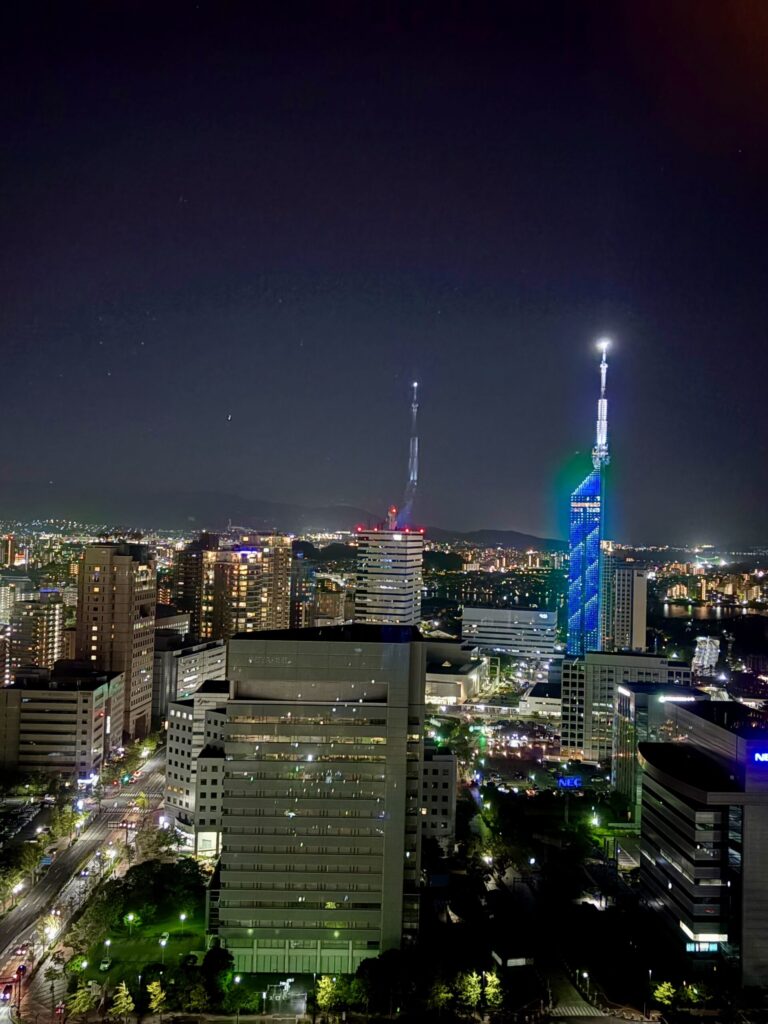 夜には美しくライトアップされた福岡タワーの姿が望めました。